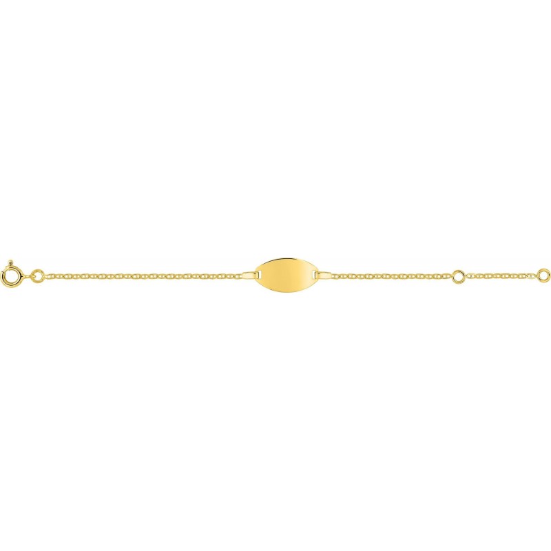 Gourmette bébé en or 375/1000 jaune. Fermoir anneau ressort. Longueur 14cm. Poids: 1.10g