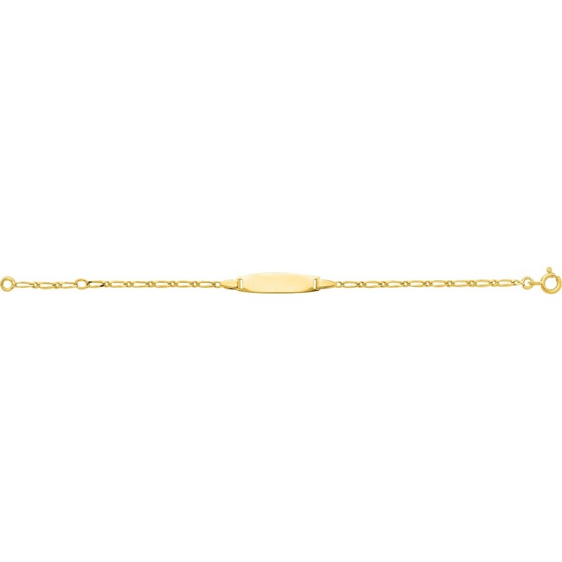 Gourmette bébé en or 750/1000 jaune. Fermoir anneau ressort. Longueur ajustable à 12cm et 14cm. Poids: 2.05g