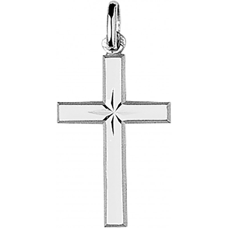 Croix en argent 925/1000 rhodié sur bélière mobile. Poids: 0.90g