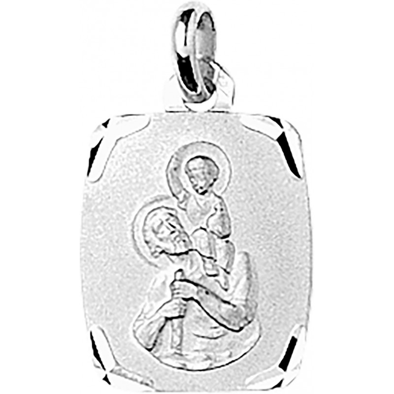 Médaille en argent 925/1000 rhodié avec le Saint Christophe sur bélière mobile. Poids: 1.40g
