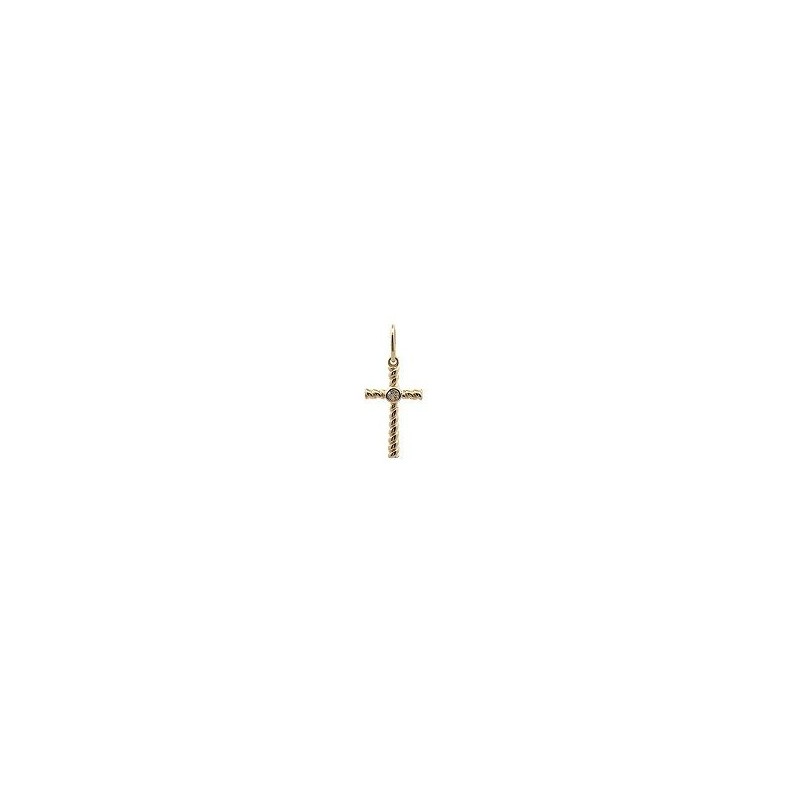 Croix en or 375/1000 jaune sertis d'oxydes de zirconium sur bélière mobile. Poids: 0.35g