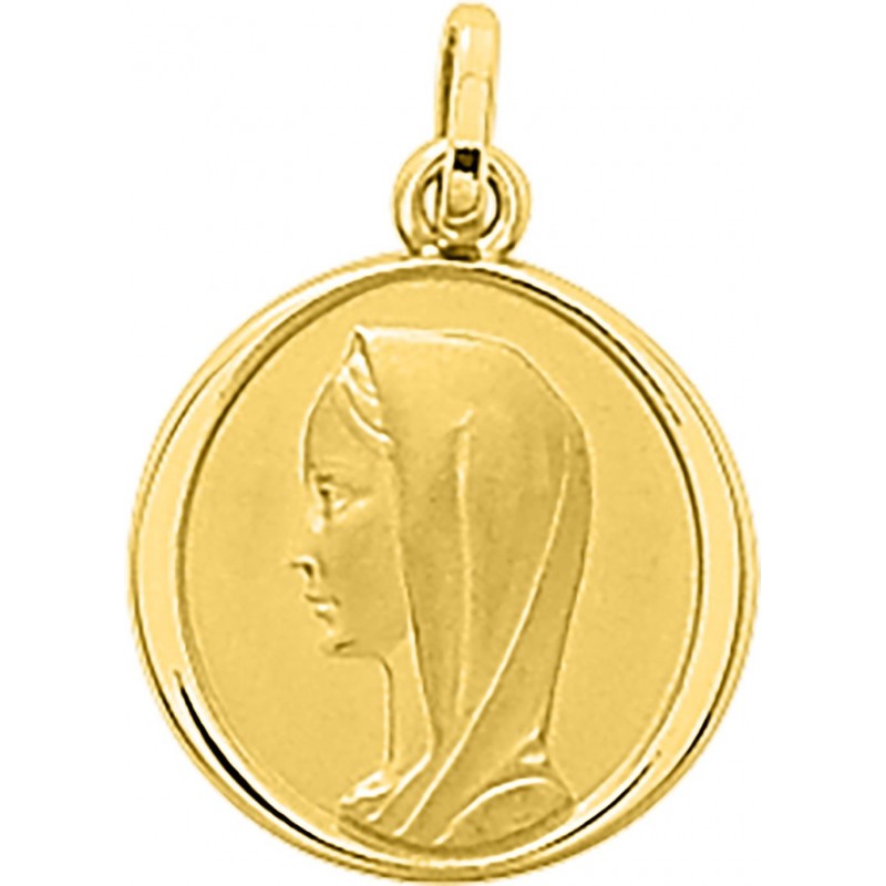 Medaille en or 375/1000 jaune ronde avec Vierge sur bélière mobile. Poids: 1.25g