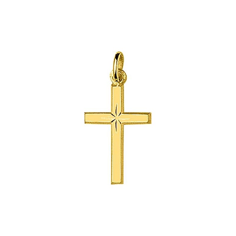 Croix en or 750/1000 jaune sur bélière mobile. Poids: 0.70g