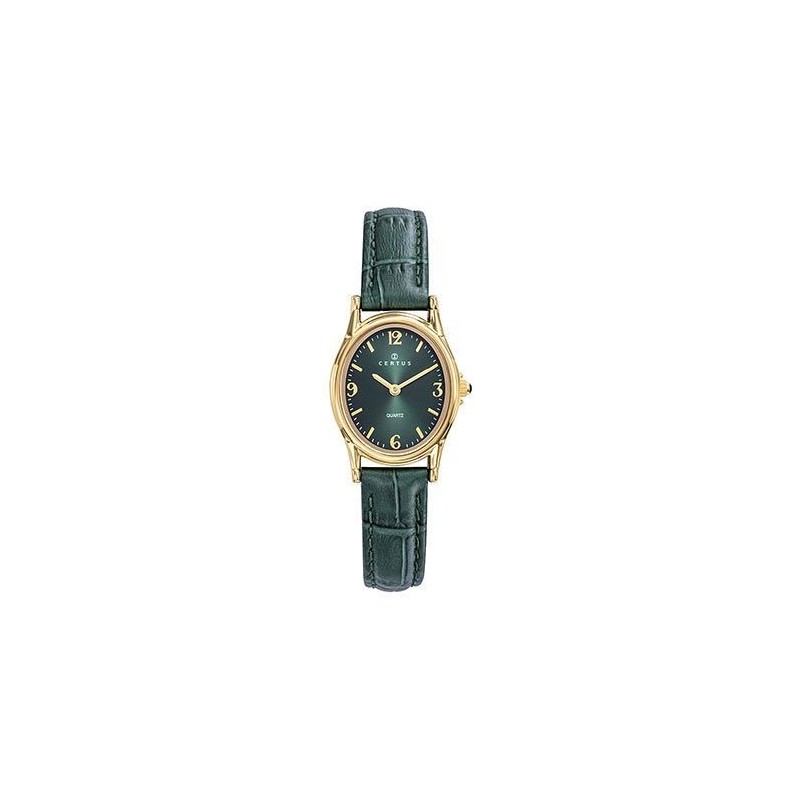Montre CERTUS, Mouvement quartz, boitier acier (diam. 24mm), fond vert, bracelet cuir vert.