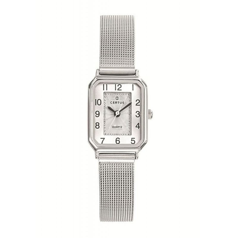 Montre CERTUS, Mouvement quartz, boitier acier (diam. 21mm), fond argent, bracelet acier milanais.