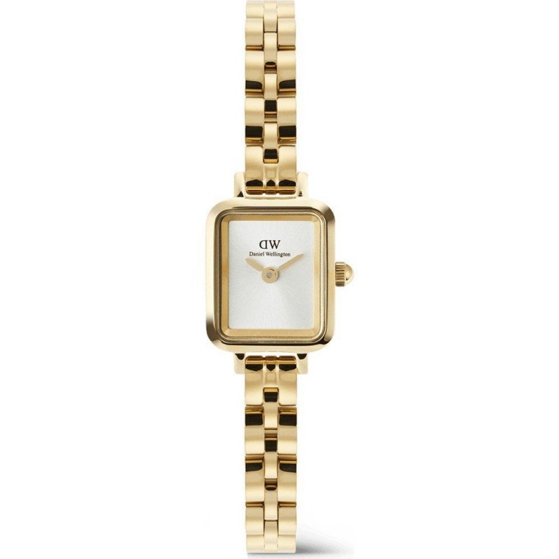 Montre DANIEL WELLINGTON, Mouvement quartz, boitier acier (15*18mm), fond blanc, bracelet acier doré.