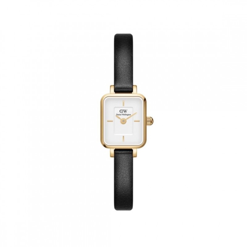 Montre DANIEL WELLINGTON, Mouvement quartz, boitier acier (15*18mm), fond blanc, bracelet cuir noir.