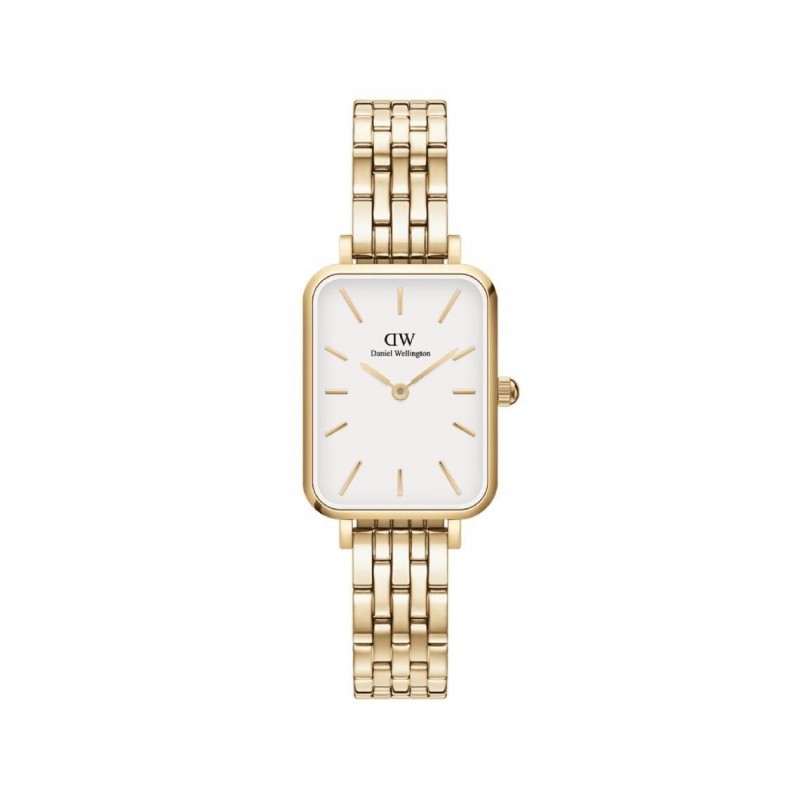 Montre DANIEL WELLINGTON, Mouvement quartz, boitier acier (20*26mm), fond blanc, bracelet acier doré.