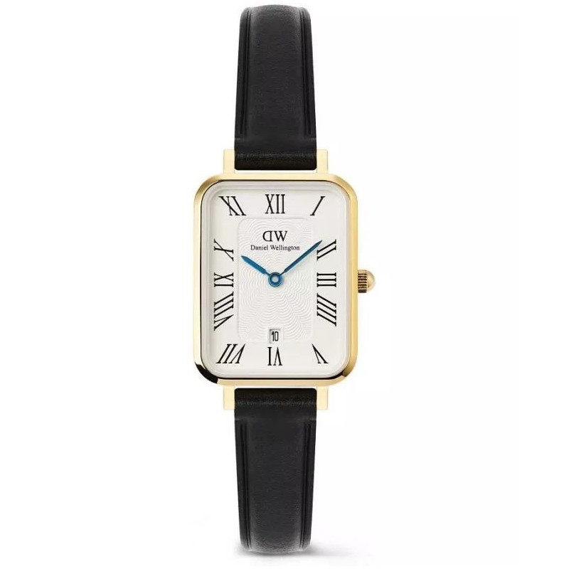 Montre DANIEL WELLINGTON, Mouvement quartz + dateur, boitier acier (20*26mm), fond blanc, bracelet cuir noir.