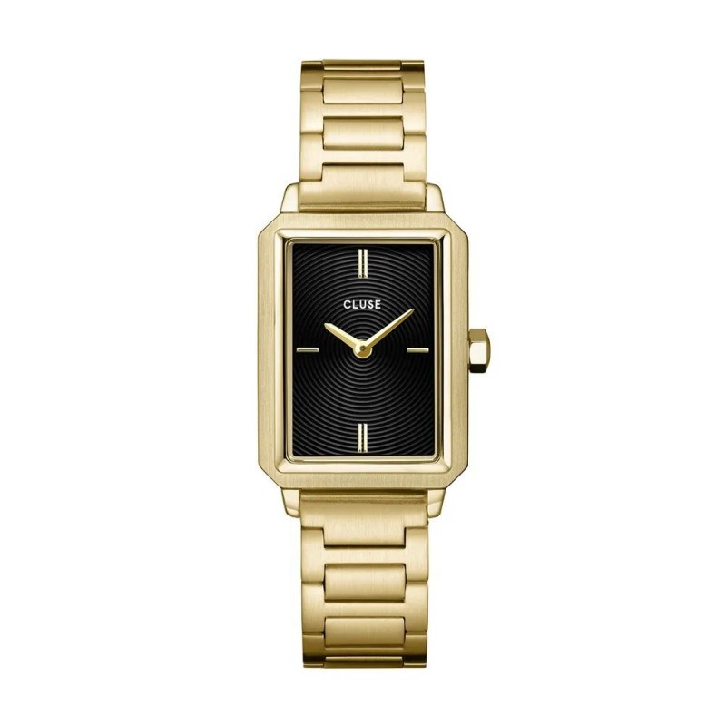 Montre CLUSE, Mouvement quartz, boitier acier (diam. 31mm), fond noir, bracelet acier doré.