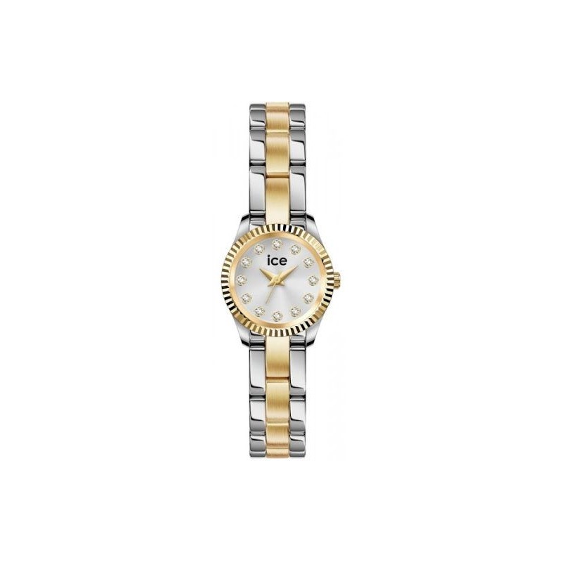 Montre ICE WATCH. Mouvement quartz, boitier acier (diam 19mm) fond argenté, bracelet acier bicolore (argenté et doré).