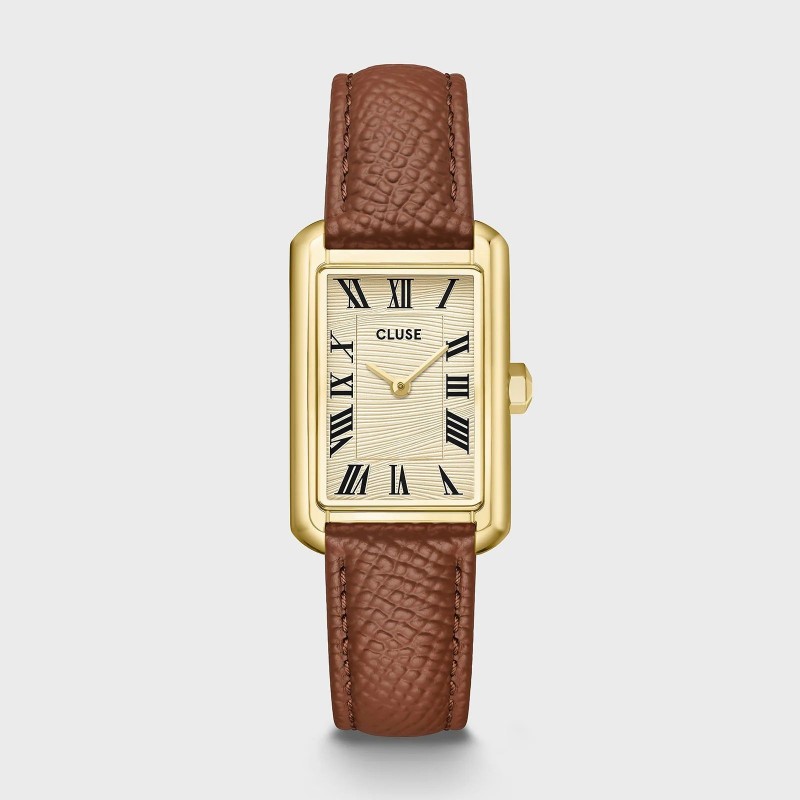 Montre CLUSE, Mouvement quartz, boitier acier (diam. 21mm), fond doré, bracelet cuir marron.
