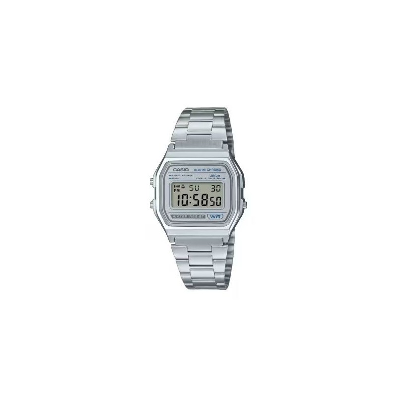 Montre CASIO, Mouvement quartz + dateur, boitier acier (diam. 33mm), fond affichage, bracelet acier. Fonction: Chronomètre, alarme.