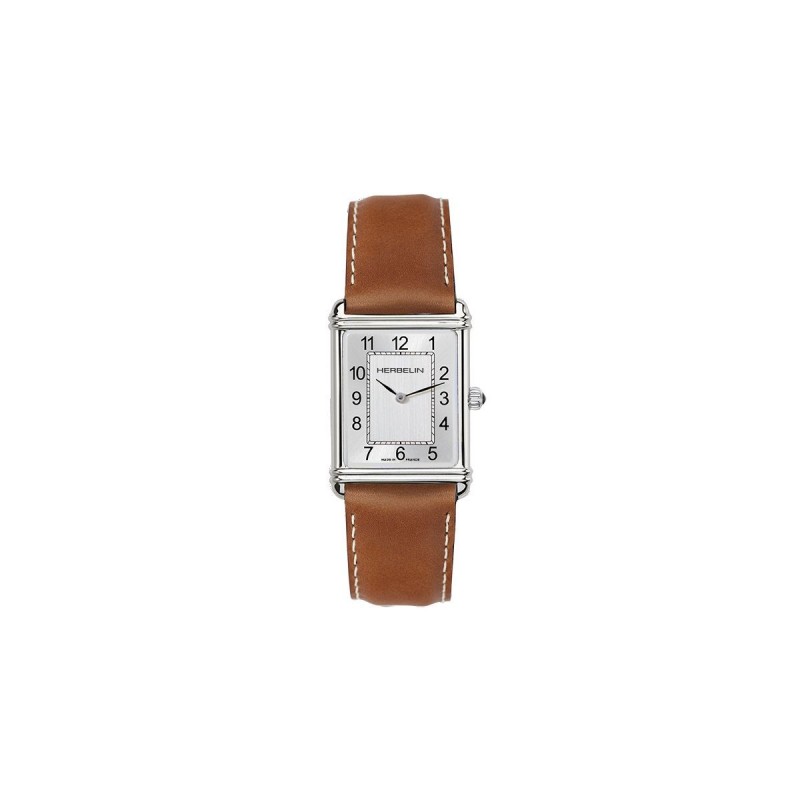 Montre HERBELIN, Mouvement quartz, boitier acier (26.5*32.20mm), verre saphir, fond argent, bracelet cuir marron avec boucle traditionnelle.