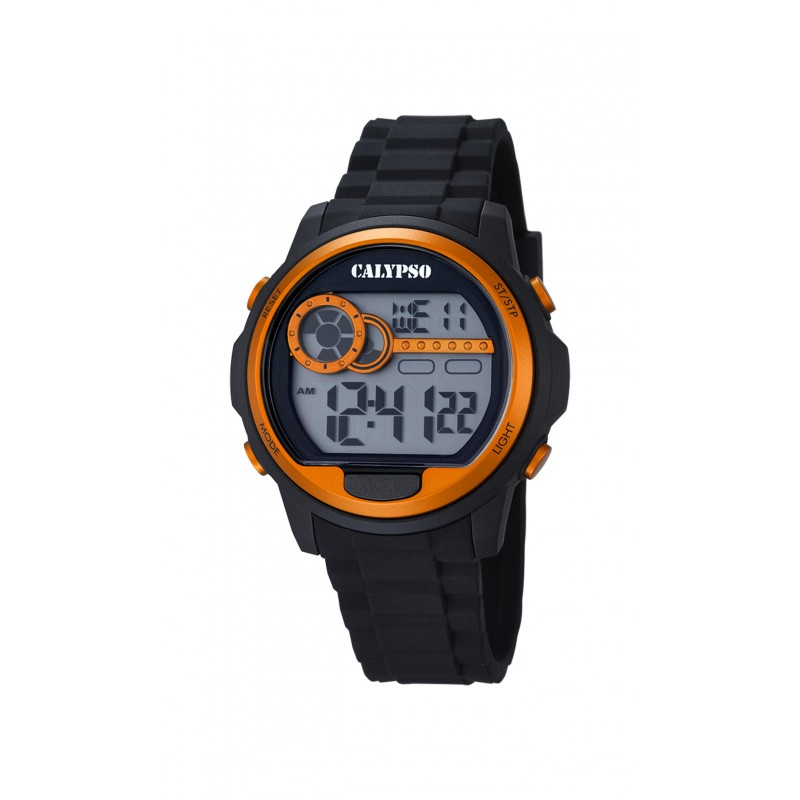 Montre CALYPSO, Mouvement quartz, boitier resine (diam. 44mm), affichage digital, bracelet resine noir. Fonction: Chronomètre, alarme, 2eme fuseau horaire