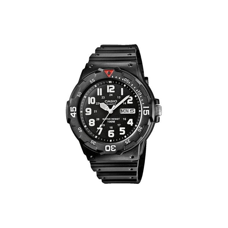 Montre CASIO, Mouvement quartz + dateur, boitier résine (diam. 45mm), fond noir, bracelet résine noir. Etanchéité: 10 ATM. Garantie 2 ans