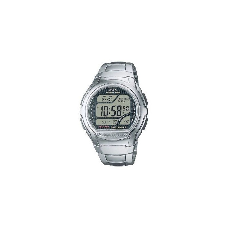 Montre CASIO, Mouvement quartz + dateur, boitier acier (diam. 44mm), fond affichage, bracelet acier. Fonction: Chronomètre, alarme, compte à rebours, heure universelle. Etanchéité: 5 ATM. Garantie 2 ans