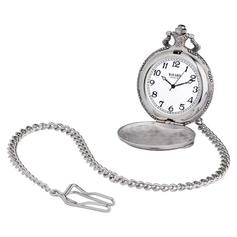 Montre de poche, Mouvement quartz, boitier (diam. 47mm), fond blanc, chaine argenté.