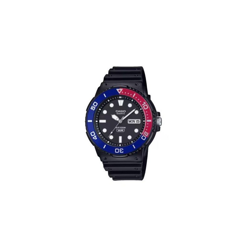 Montre CASIO, Mouvement quartz + dateur, boitier acier (diam. 45mm), fond noir, bracelet résine noir.