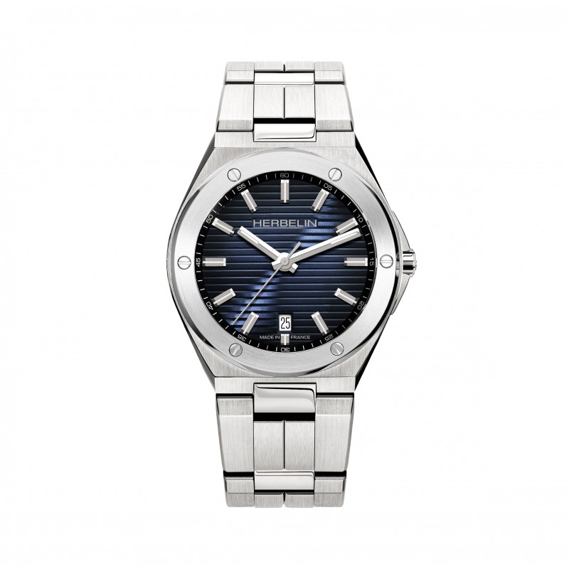 Montre HERBELIN, Mouvement quartz + dateur, boitier acier (diam. 40.5mm), verre saphir, fond bleu dégradé, bracelet acier avec boucle déployante.