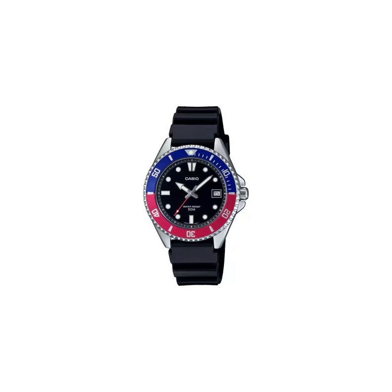 Montre CASIO, Mouvement quartz + dateur, boitier résine (diam. 38mm), fond noir, bracelet résine noir.