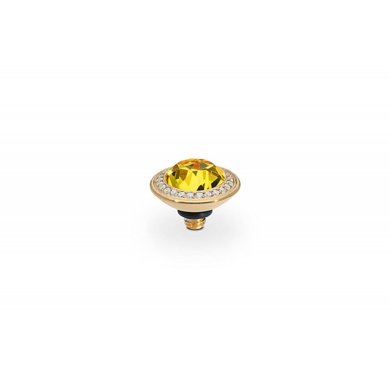 Top QUDO en acier doré à visser avec cristal jaune et strass (9mm).