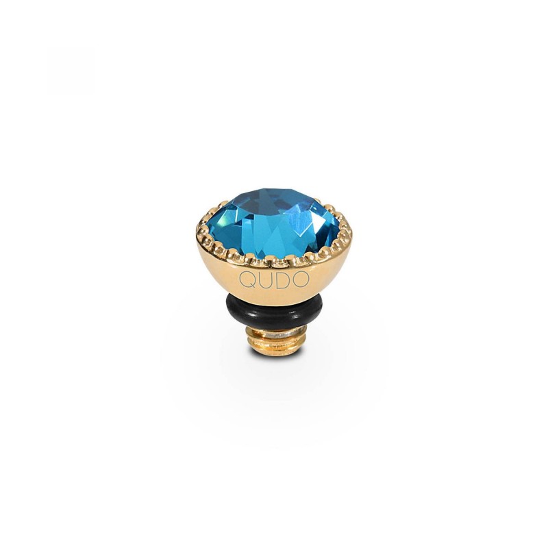 Top QUDO en acier doré à visser avec cristal bleu (5mm).