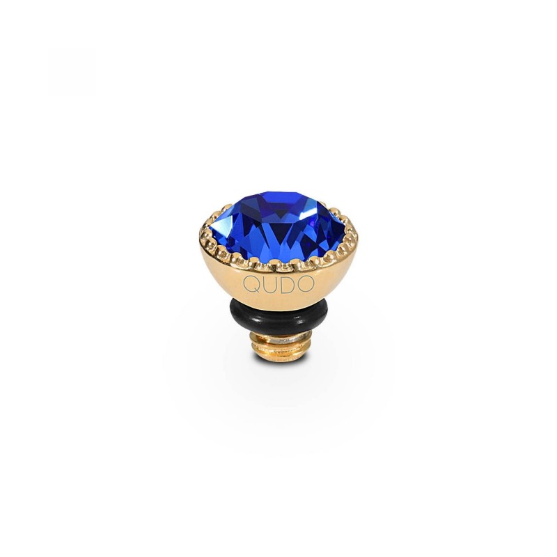 Top QUDO en acier doré à visser avec cristal bleu (5mm).