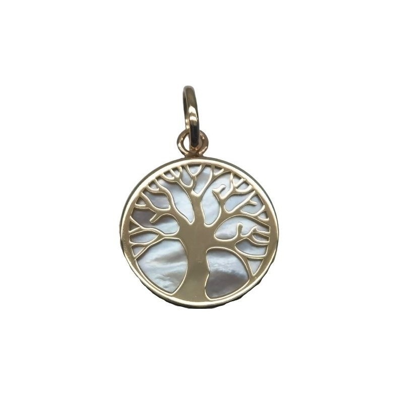 Pendentif en or 375/1000 jaune arbre de vie avec nacre sur bélière mobile. Poids: 1.09g