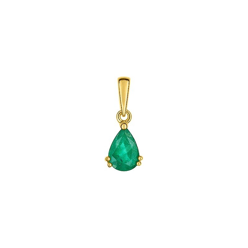 Pendentif en or 750/1000 jaune serti d'une émeraude sur béliere mobile. Poids: 0.45g