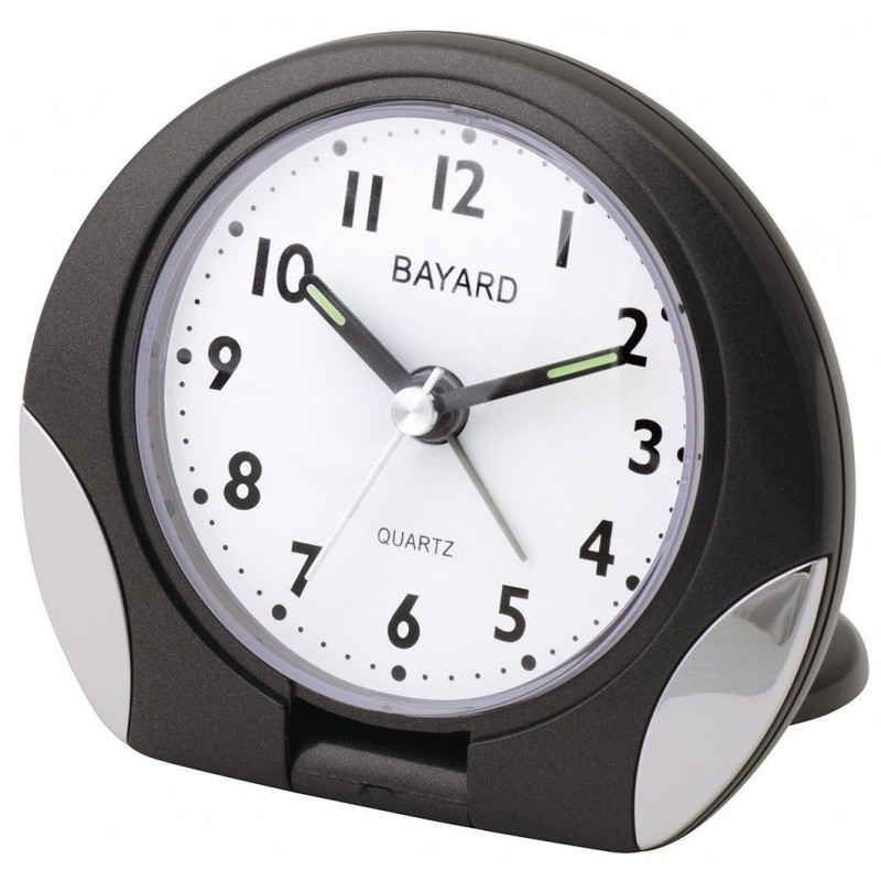Reveil, Mouvement quartz, en plastique (7.2x8.1cm), fond blanc, entourage noir.